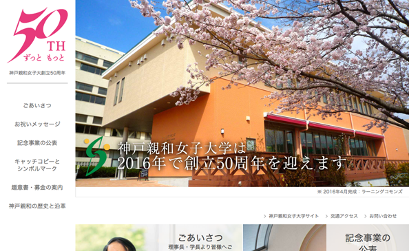神戸親和女子大学創立50周年記念ウェブサイト。